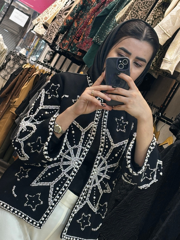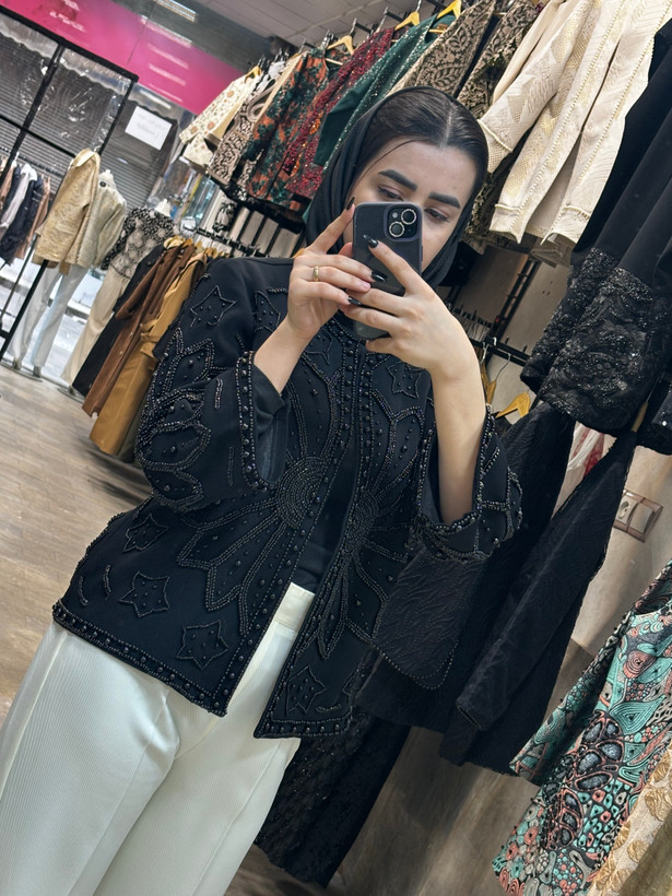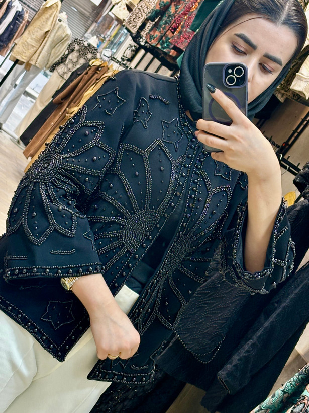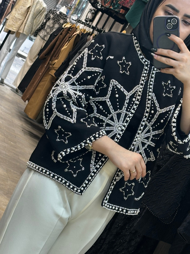 کراپ کت زنانه مجلسی کرپ تماما کار شده
